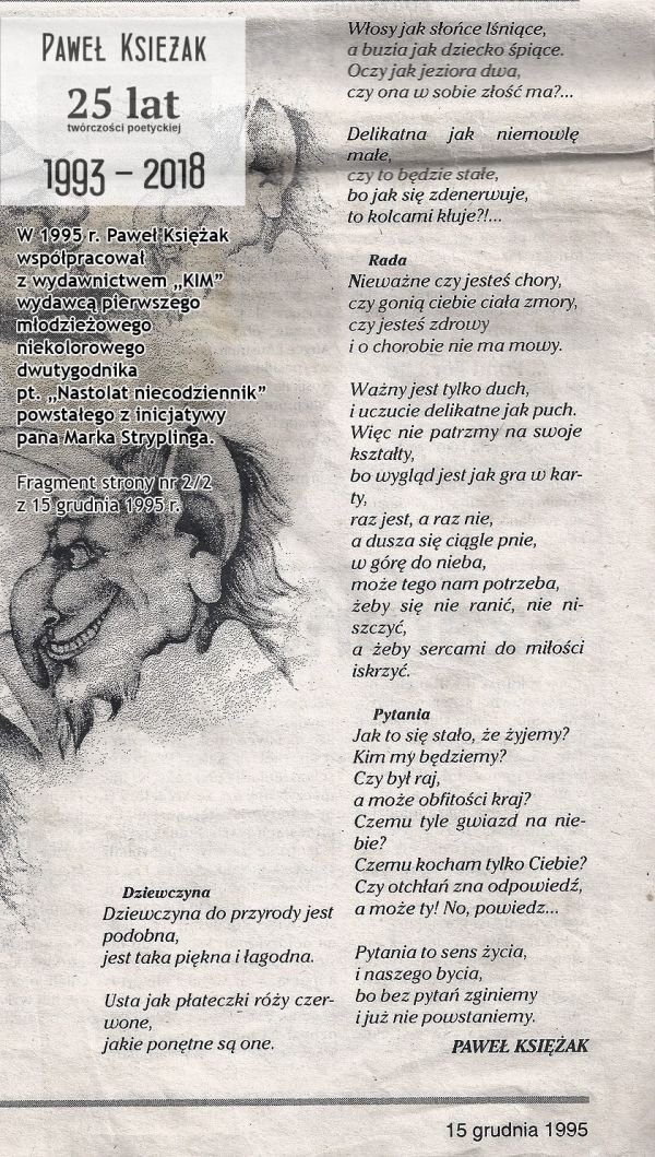 Pawła zobaczyłam pierwszy raz w Dniu Dziecka, gdy w Teatrze Lalki i Aktora deklamował swoje wiersze. [...]
