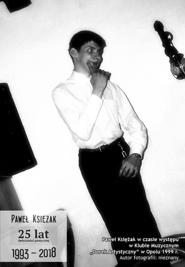Paweł Księżak, rozpoczął swoje występy poetyckie w Szkole Podstawowej im. Marchlewkiego (od 1995 roku im. Polskich Olimpijczyków) w Opolu, przy ul. Katowickiej 35. Jako czternastoletni chłopiec, 1 czerwca 1992 roku, wyrecytował na opolskim rynku z pamięci ponad 70 utworów. Był to jeden z jego pierwszych publicznych występów, który zapoczątkował jego działalność poetycką. Wkrótce potem Paweł Księżak zaczął być zapraszany na różne imprezy okolicznościowe w tym 1993 roku na recytacje poezji w Teatrze Lalki i aktora im. Alojzego Smolki w Opolu, co przyczyniło się do jego rozpoznawalności w mieście.